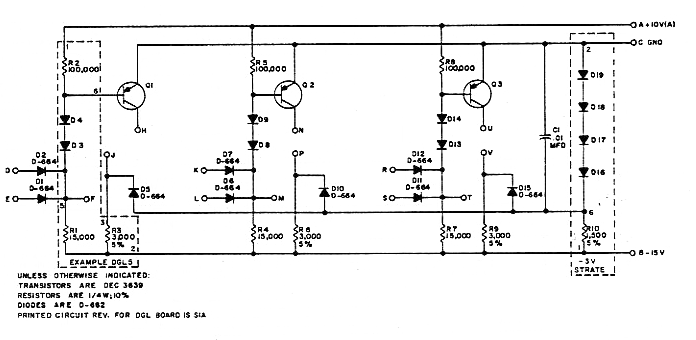 For a circuit diagram of the S111 see S111 circuit. The diode resistor array is outlined by a dotted line on the right of the diagram.