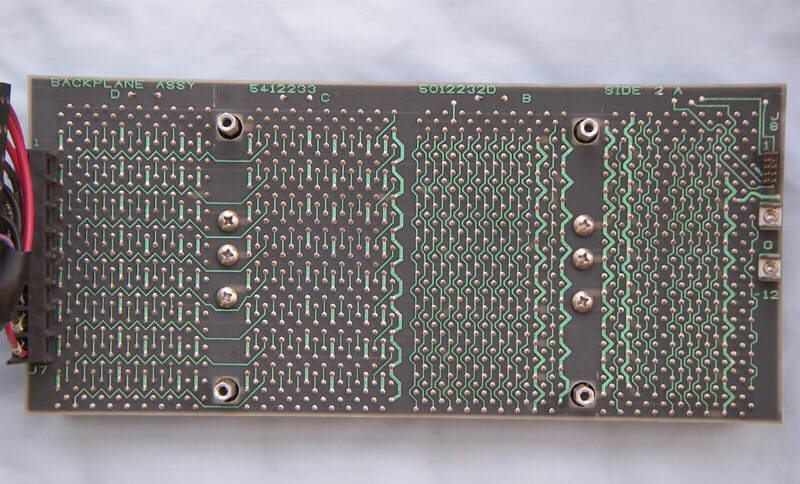 The rear of the Q-Bus connector, showing the circuit layout. (The bus is on the right and the 'C-D' interconnect on the left.